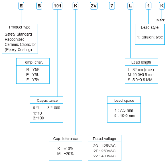 | Agencies | Standard No. | Recognized File No. | Class & W.V. | Capacitance Value |