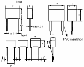 | Withstand voltage: Between terminals | P≥15mm For 2700VDC 2sec P=10mm For 2500VDCD 2sec |