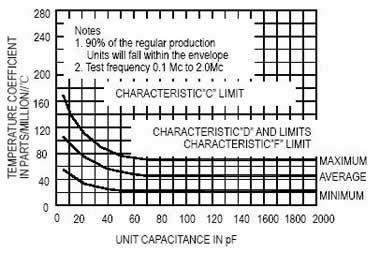 The typical temperature coefficient curves shown on other pages of this catalog have envelopes indicating the extreme temperature coefficient limits within which 90% of the dipped mica capacitors will fall. When special temperature coefficient limits are required, or when it is desired that the units be separated into temperature coefficient cells, we are prepared to perform a 100% measurement of the temperature coefficient and capacitance drift parameters.