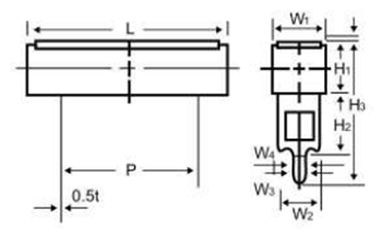 | L | P±1.5 | W1±1 | W2±0.2 | W3±0.2 | W4±0.2 | H1±1.0 | H2±0.2 | H3±0.5 | H4±1.5 | |