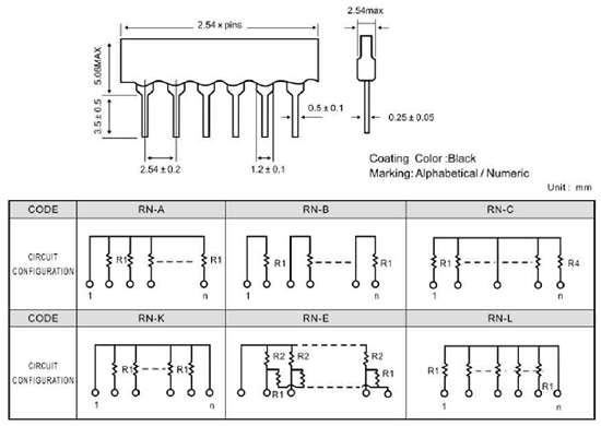 | RN | 0.125W | 0.5W | 0.652W | 0.75W | 0.875W | 1W | 1.05W | 1.15W | 1.25W | 1.35W | 1.45W |