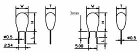 | Leakage current | Whichever is greater measured after 2 minutes application of rated working voltage at +20°C | 1<0.08CV or 0.5µA | ||||||||||||