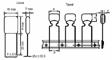 iii. PEN. Polyester film capacitor - radial, non-inductive construction |
